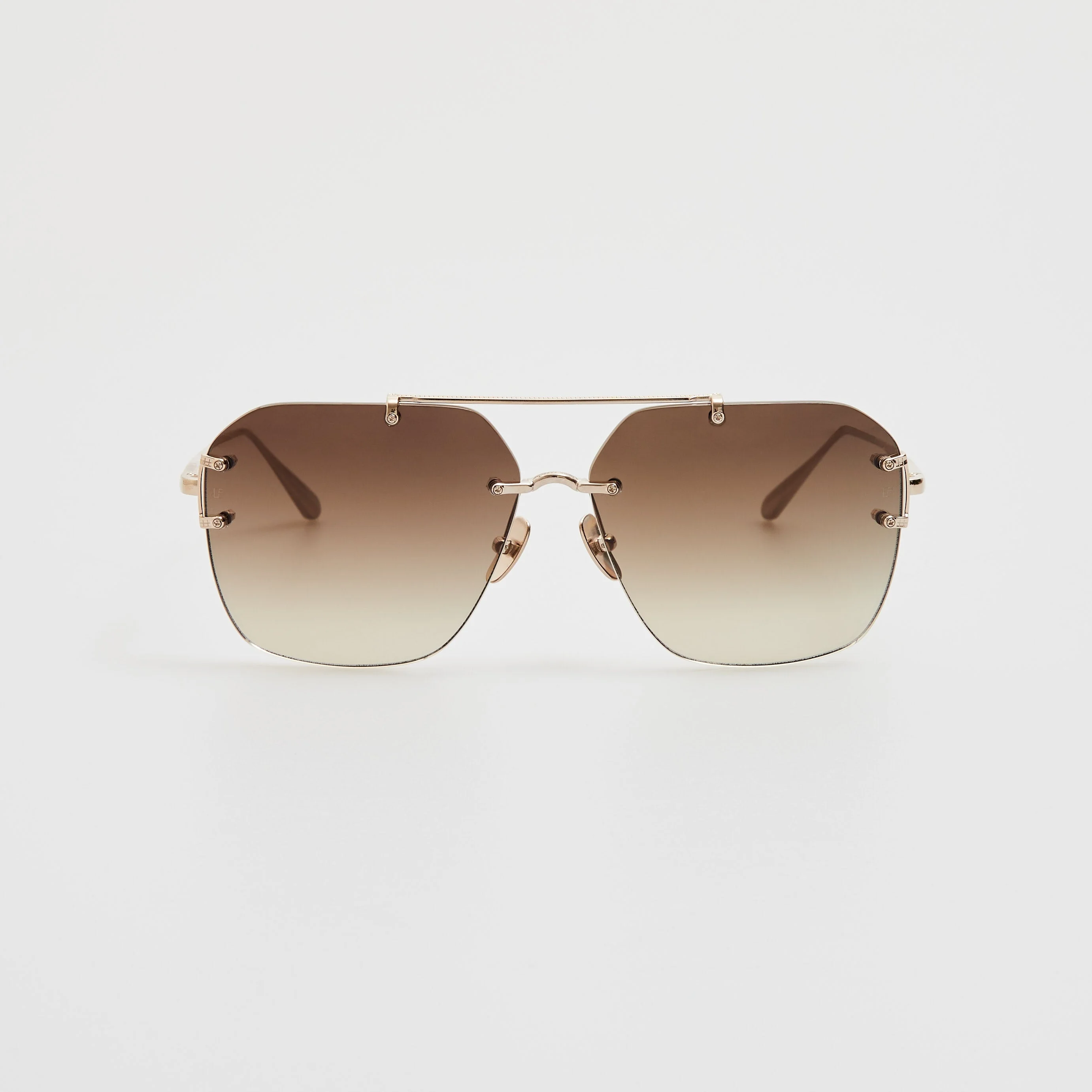 Introducing Reyner. Inspired by strong architectural lines, these Square rimless sunglasses ultra lightweight light gold plated titanium. Fitted with solid green lenses Details -Country of origin : Japan -100% UV protected solid lenses -Titanium frame with titanium temples -sku:LFL1312C2SUN Size & Fit 53mm lens width 17mm bridge width 140mm temple length "