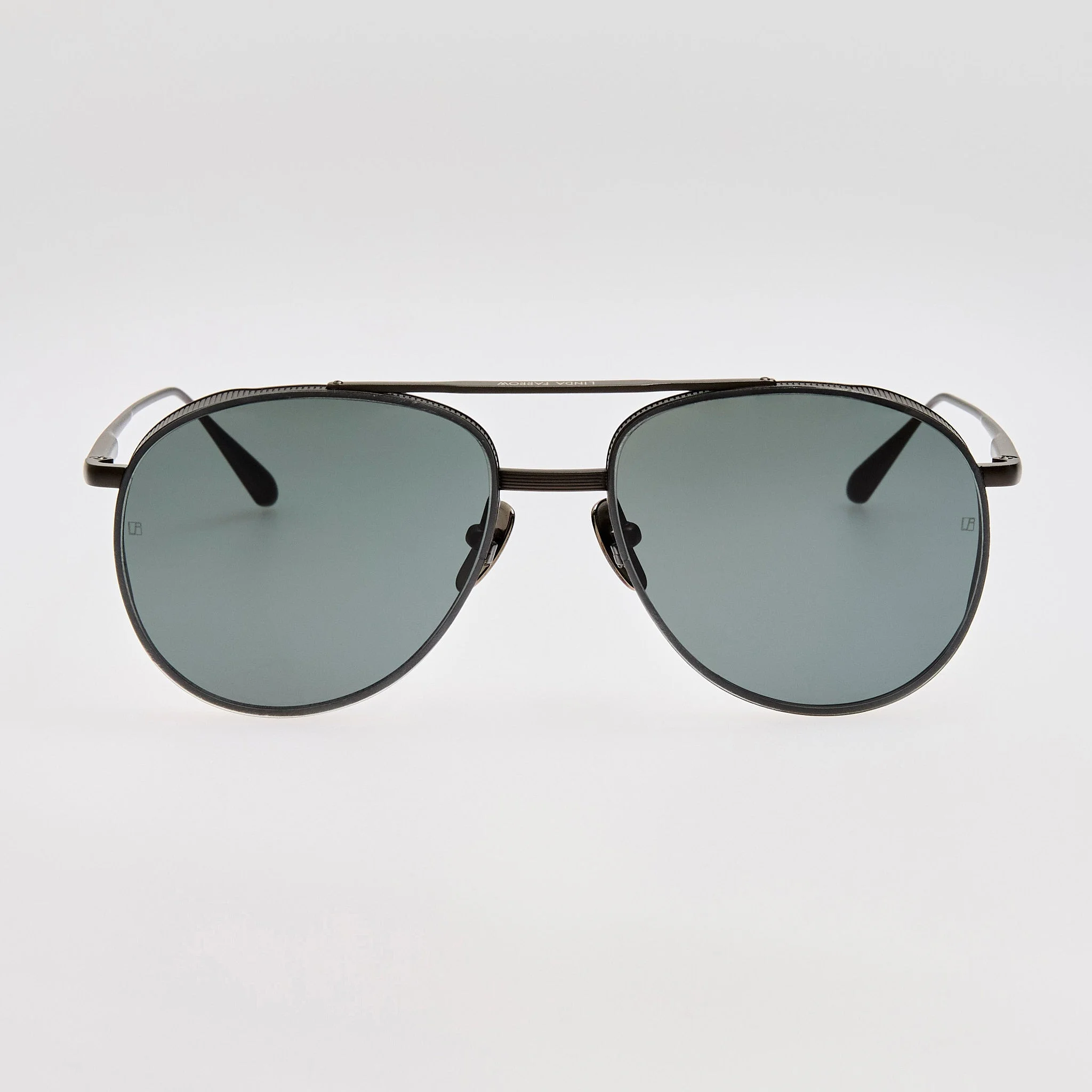 This bold aviator style is precision-engineered from lightweight pure Japanese titanium in a matt nickel finish. With a structured brow line, the solid grey lenses offer full UV protection and features sculpted adjustable nose pads for elevated comfort and wearability. Details -Country of origin: Japan -100% UV protected lenses -Titanium frame with titanium temples -LFL1547C3SUN Size & Fit 57mm lens width 16mm bridge width 145mm temple length