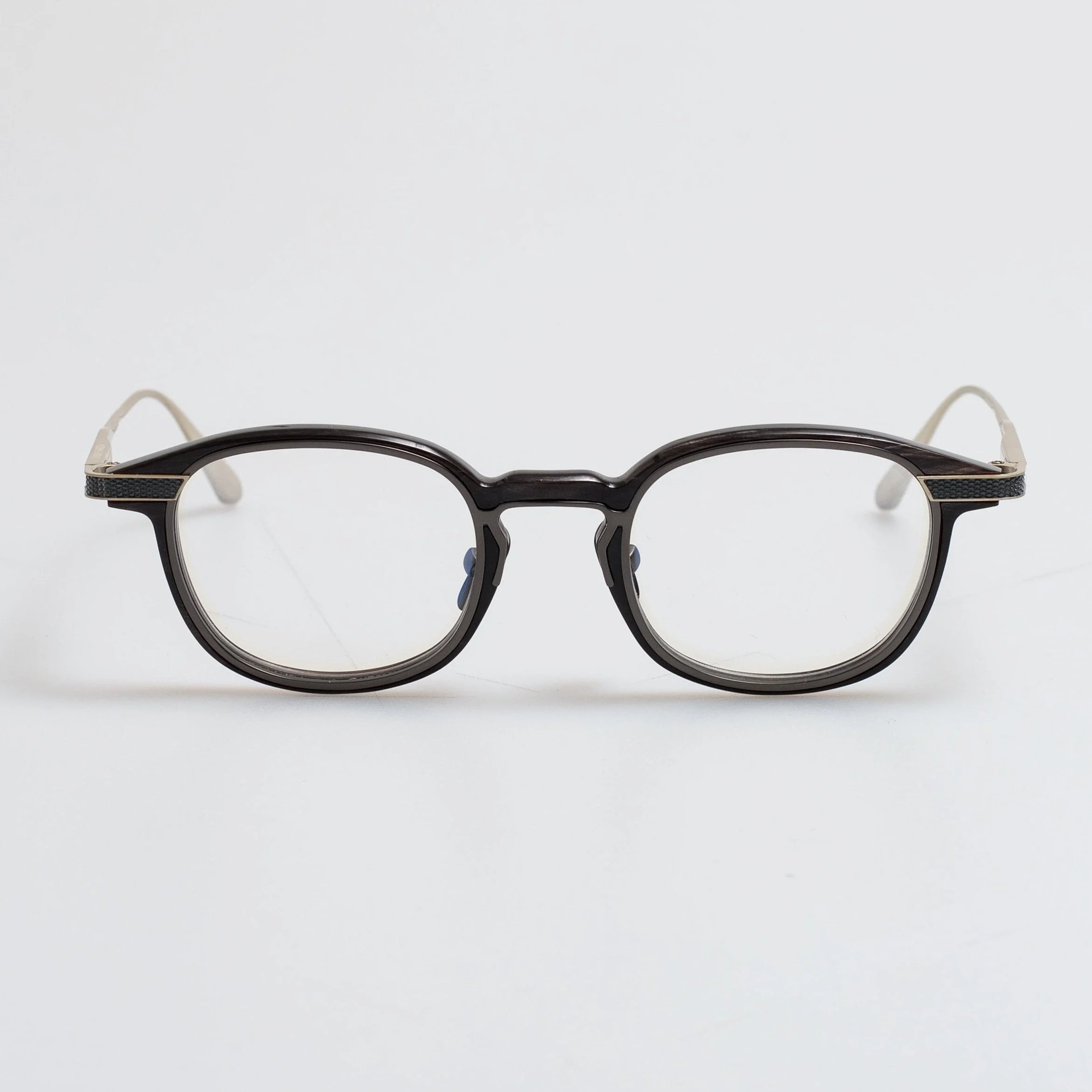 Introducing the Moore frame, crafted with buffalo horn frame and 925 sterling silver temples , the frame offers both style and comfort. The frame is fitted with adjustable nose pads offer a tailored fit by allowing bespoke positioning for enhanced comfort. Buffalo horn is a luxurious, sustainable material valued for its aesthetic and functional qualities. It is versatile and durable, used to create timelessly sophisticated items. Each piece of buffalo horn has a unique texture, colour, and pattern, making each pair of eyewear distinct. The horn is left natural, polished to the desired finish using a specialized Japanese polish. As a natural material, buffalo horn may develop subtle character lines over time and is sensitive to humidity and temperature changes. With proper care, buffalo horn maintains its beauty and functionality for many years. Sterling silver, an alloy of 92.5% silver and 7.5% other metals like zinc, copper, or nickel, is more durable and resistant to rust and tarnish than pure silver. Our silver frames undergo a triple-layer plating process for enhanced durability and oxidation protection. Silver .925 may naturally darken or blacken over time due to its reaction with oxygen. The .925 mark on our eyewear certifies the silver’s authenticity and quality. Experience unparalleled luxury and craftsmanship with our exclusive collection, where the timeless elegance of buffalo horn meets the refined brilliance of Sterling .925 silver. Details -Country of origin: Japan -Optical lens free from prescription -Buffalo horn frame with sterling silver temples -sku:SH006-01