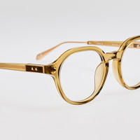 Introducing the Nelson optical frame. Featuring a combination oval-shaped frame with a front crafted from khaki Italian acetate, complemented by 22 karat light gold-plated titanium temple tips for enhanced durability. The frame is fitted with adjustable titanium nose pads, ensuring personalized comfort and support. Details -Country of origin: Japan -Optical lens free from prescription -Acetate frame with titanium temples -sku:LFL1517C3OPT