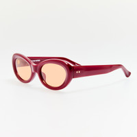 The oval frame is crafted from Italian acetate in red. Fitted with amber lenses offering full UV protection. The frame features sculpted nose pads for a tailored fit. Famed for his use of colour and print, our collaboration with Dries van Noten is an extension of his fashion line and design ethos. Each piece reflects the brand’s signature craftsmanship and visual poetry — from high-polish acetate finishes and sculptural feminine cat-eye silhouettes to deep jewel-tone hues that capture light and emotion in equal measure. Details -Country of origin: Japan -100% UV protected solid lenses -Acetate frame with acetate temples -Acetate Made in Italy -sku: DVN211C8SUN Size & Fit 53mm lens width 22mm bridge width 140mm temple length