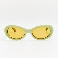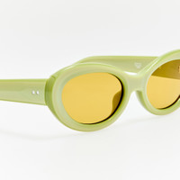 The oval frame is crafted from green Italian acetate and fitted with brown lenses offering full UV protection. The frame features sculpted nose pads for a tailored fit. Famed for his use of colour and print, our collaboration with Dries van Noten is an extension of his fashion line and design ethos. Each piece reflects the brand’s signature craftsmanship and visual poetry — from high-polish acetate finishes and sculptural feminine cat-eye silhouettes to deep jewel-tone hues that capture light and emotion in equal measure. Details -Country of origin: Japan -100% UV protected solid lenses -Acetate frame with acetate temples -Acetate Made in Italy -sku: DVN211C9SUN Size & Fit 53mm lens width 22mm bridge width 140mm temple length