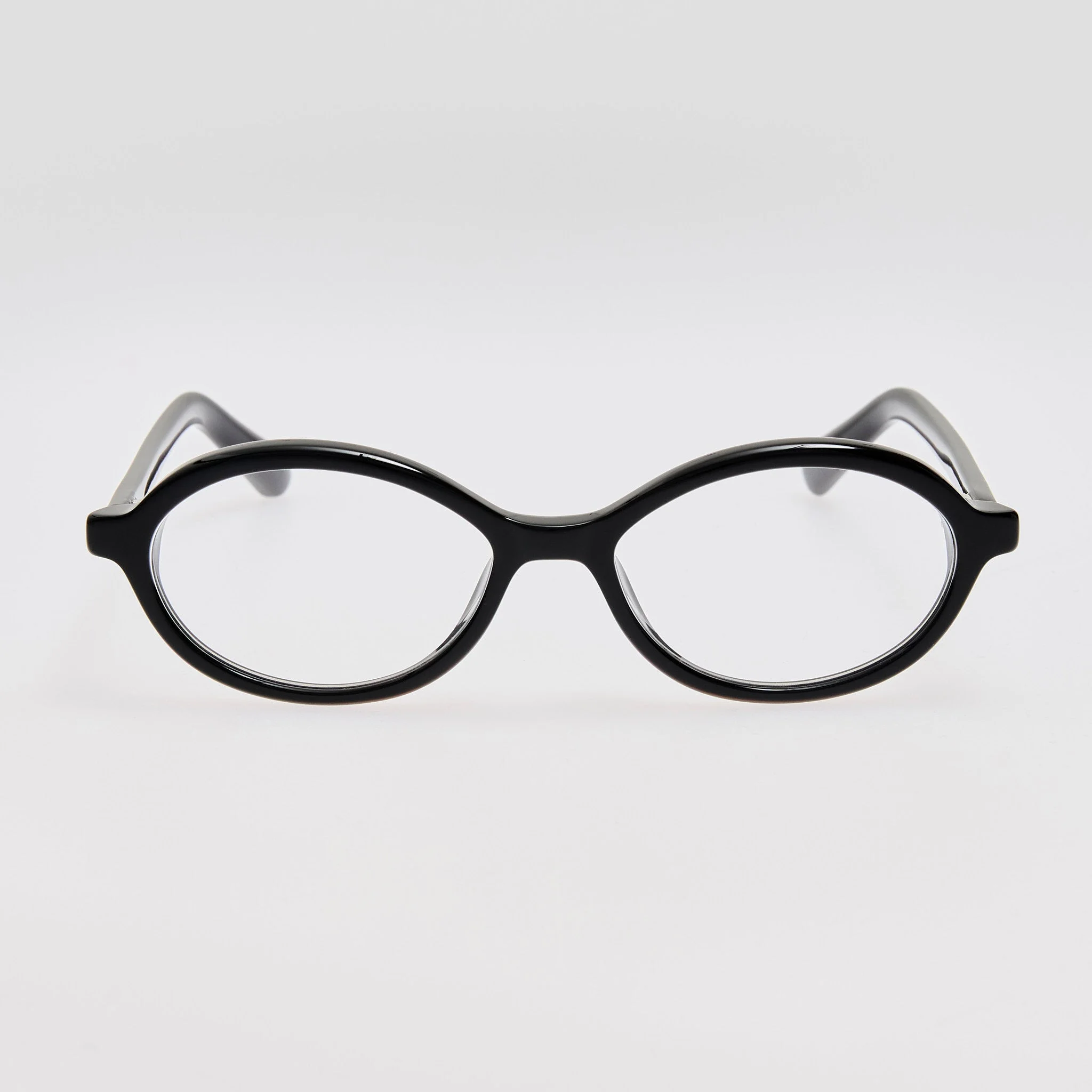 Crafted in black acetate, the PABLO frame presents a clean oval silhouette designed for everyday ease. Sculpted nose pads offer comfort and the temples are finished with subtle silver branding. Details -Country of origin: Japan -Optical lens free from prescription -Acetate frame with acetate temples -sku:JAC123C1OPT Size & Fit 63mm lens width 12mm bridge width 135mm temple length