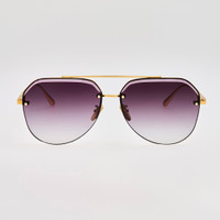 The Quynh is a classic aviator frame crafted entirely from 22 carat yellow gold-plated pure Japanese titanium, offering a lightweight yet durable construction. This frame is fitted with adjustable titanium nose pads that allow bespoke positioning for enhanced comfort. Finished with grey gradient lenses that provide 100% UV protection. Details -Country of origin: Japan -100% UV protected lenses -Titanium frame with titanium temples -sku:LFL1557C1SUN Size & Fit 63mm lens width 13mm bridge width 145mm temple length