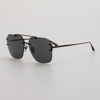 Introducing Reyner. Inspired by strong architectural lines, these Square rimless sunglasses ultra lightweight matt nickel titanium. Fitted with solid grey lenses Details -Country of origin : Japan -100% UV protected solid lenses -Titanium frame with titanium temples -sku:LFL1312C3SUN Size & Fit 48mm lens width 23mm bridge width 145mm temple length