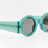 The round frame is crafted from Italian acetate in teal. Fitted with blue lenses offering full UV protection. The frame features sculpted nose pads for a tailored fit. Famed for his use of colour and print, our collaboration with Dries van Noten is an extension of his fashion line and design ethos. Each piece reflects the brand’s signature craftsmanship and visual poetry — from high-polish acetate finishes and sculptural feminine cat-eye silhouettes to deep jewel-tone hues that capture light and emotion in equal measure. Details -Country of origin: Japan -100% UV protected solid lenses -Acetate frame with acetate temples -Acetate Made in Italy -sku: DVN98C28SUN Size & Fit 44.5mm lens width 28mm bridge width 145mm temple length