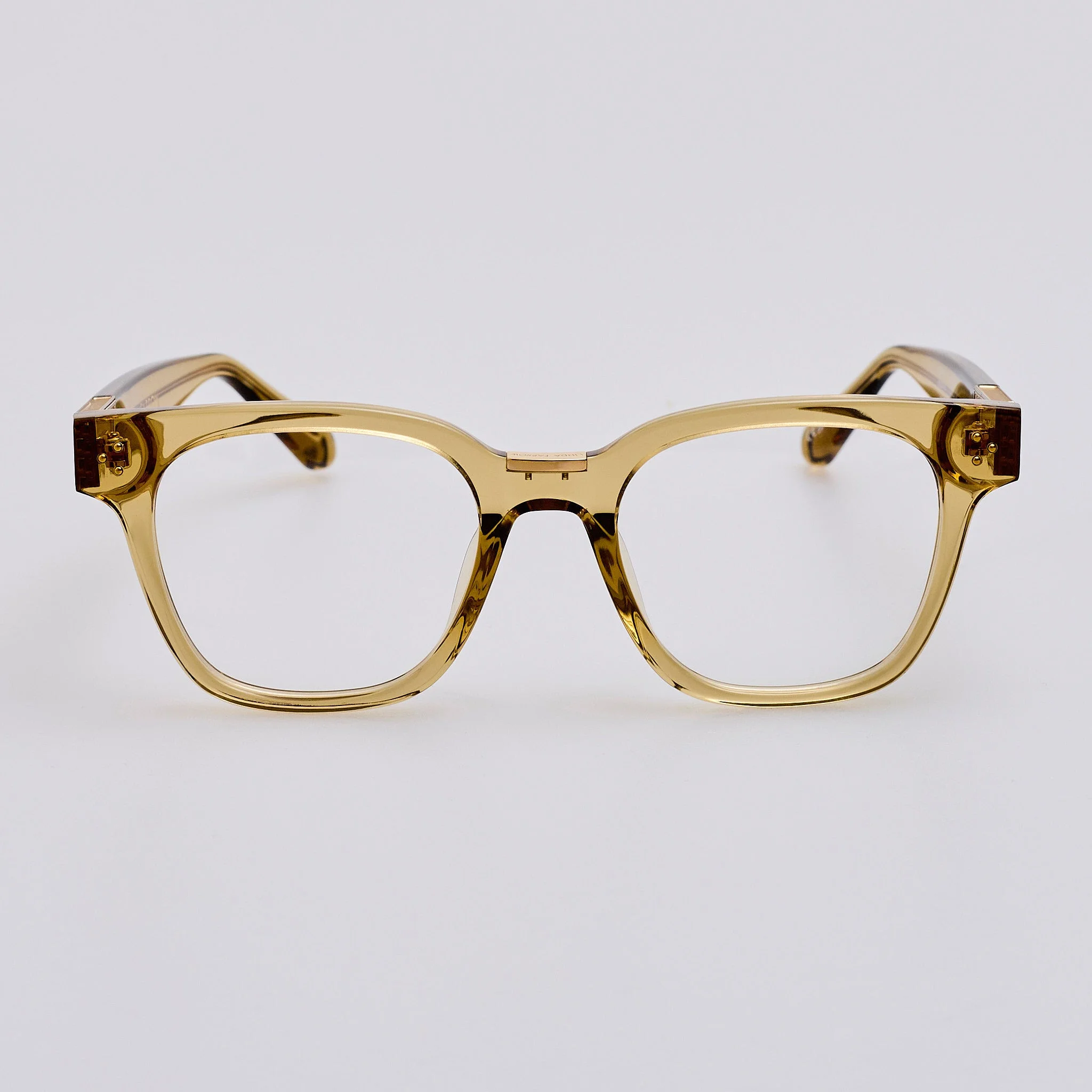 This product is a limited edition of 165. The edition number is printed on the inside of the temple #/165. This optical frame channels a modern aesthetic with its khaki Italian acetate construction and softly squared D-frame design. The lightweight frame is finished with 22 carat light gold-plated titanium cores, balancing minimalism with craftsmanship. Details -Country of origin: Japan -Optical lens free from prescription -Acetate frame with acetate temples -sku:LFL1481C7OPT Size & Fit 52mm lens width 20mm bridge width 145mm temple length