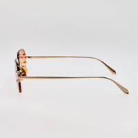 This square frame is crafted from 22 carat light-gold-plated pure Japanese titanium, delivering a refined and minimalist silhouette. The camel gradient lenses offer 100% UV protection, combining style with sun safety. This frame is fitted with adjustable titanium nose pads, allowing for a custom, comfortable fit. Details -Country of origin: Japan -100% UV protected lenses -Titanium frame with titanium temples -sku:LFL1476C4SUN Size & Fit 58mm lens width 17mm bridge width 145mm temple length