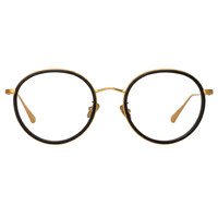 A striking balance of finely sculpted acetate and smooth shiny titanium lends these round optical frames their allure. The Sato optical frame from the LINDA FARROW collection is formed from a finely stepped recycled black acetate rim encircled with a highly polished 22 carat yellow gold plated titanium brow which is held in place with a fine gold wire running beneath the eye. Keep your frames protected in the LINDA FARROW travel case. Details -Optical lens free from prescription -Titanium frame with titanium temples -Titanium Made in Japan sku:LFL1452C1OPT Size & Fit 50mm lens width 19mm bridge width 146mm temple length
