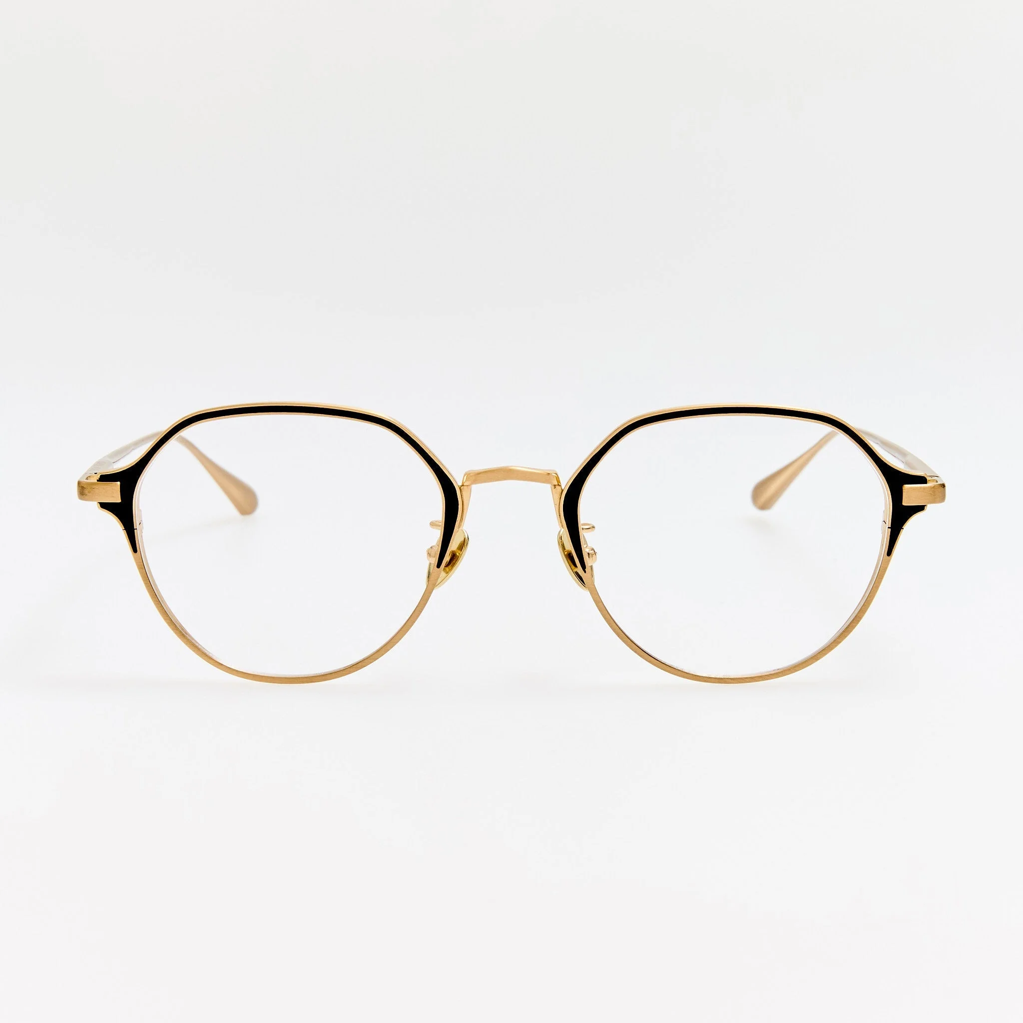 The Wilson angular optical frame features a satin black painted rim encircled by a contrasting matt champagne pure Japanese titanium framework, blending luxury with modern style. This frame is fitted with adjustable nose pads for a comfortable, bespoke fit. Details -Optical lens free from prescription -Titanium frame with titanium temples -Titanium Made in Japan -sku:LFL1633C3OPT Size & Fit 51mm lens width 21mm bridge width 145mm temple length