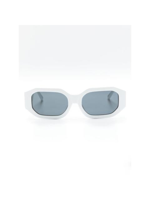 x The Attico Blake rectangle-frame sunglasses Partnering with The Attico, eyewear brand Linda Farrow presents the Blake sunglasses. Boasting a rectangular frame, they are made from translucent acetate in a black hue, with UV-protecting lenses rendered in blue-grey. At the arm lies an embossing of the brand's logo for subtle branding. Highlights - Black - Acetate - Logo-embossed arm - Rectangle frame - Grey tinted lenses - Uv-protective lenses - Straight arms - Curved tips - These glasses come with a protective case. Imported Composition Acetate 100% SIZE & FIT Measurement Arm Length 5.51 in(14 cm) Bridge Width 0.74 in(1.9 cm) Lens Diameter 2.2 in(5.6 cm) Total Width 5.9 in(15 cm)