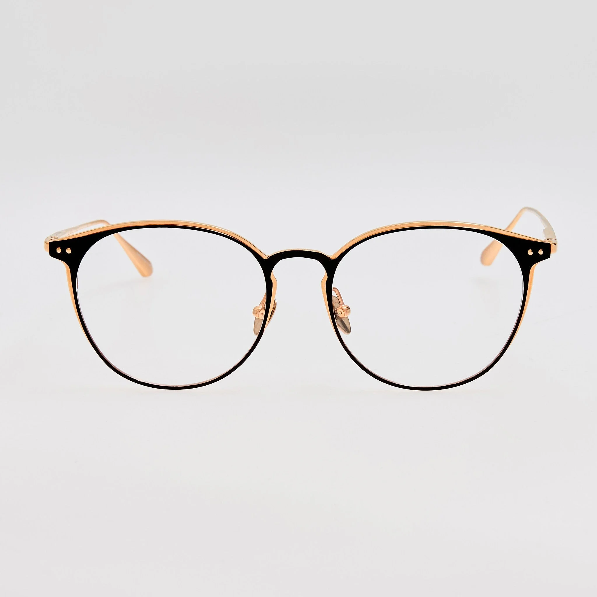 The YVES oval optical frame features a brown painted rim encircled by a contrasting 22K yellow gold-plated pure Japanese titanium framework, blending luxury with modern style. This frame is fitted with adjustable nose pads for a comfortable, bespoke fit. Details -Country of origin: Japan -Optical lens free from prescription -Titanium frame with titanium temples -sku:LFL1510C2OPT Size & Fit 54mm lens width 18mm bridge width 145mm temple length