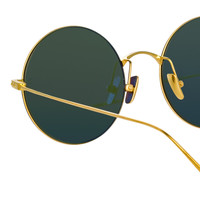 A timeless silhouette the Zaha round from the LINDA FARROW Linear collection has been engineered for lightness and flexibility. Weighing just 13.4 grams the frame is constructed from ultra-fine 22 karat yellow gold plated Japanese titanium and fitted with solid green ZEISS technology lenses for optimum clarity. Finished with adjustable nose pads to provide superior comfort and fit.