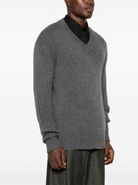 Dan sweater Highlights - Charcoal grey - Cashmere - Ribbed knit - Melange effect - V-neck - Drop shoulder - Long sleeves - Straight hem Imported Composition Cashmere 100% SIZE & FIT Model measurements Height 6 ft 2 in(1.87 m) Bust/Chest 35.82 in(91 cm) Hips 35.82 in(91 cm) Waist 31.88 in(81 cm) FittingInformation Designed to be unstructured, offering a loose fit throughout Made with a midweight knit, this piece offers some stretch Washing instructions Hand Wash