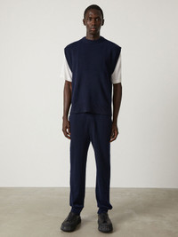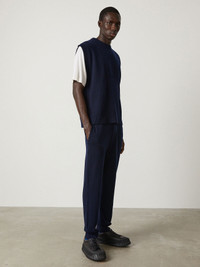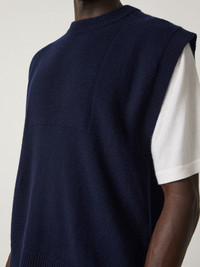 The Dennis vest is a plain knit, relaxed body silhouette with a panel of neat ribbing. Ribbed trims give the Dennis a structure finish whilst retaining its casual feel. Layer it over the Ancell t-shirt. DETAILS Knit type: Plain Knit Gauge: 7 Weight: 305g Composition: 100% organic cashmere SIZE GUIDE * Designed for a regular fit * Based on European sizing * The model is 190 cm tall (6'2 feet) and wears a size 4 Our Sizes: Size 3: S-M Size 4: M-L Size 5: L-XL