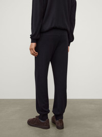 A sporty, casual silhouette, the Beaumont trousers are knitted in our signature mid-weight cashmere for transeasonal wear. The regular fit silhouette features an elasticated waistband with a hidden drawstring, a mock fly, side pockets, a back yoke detail, full-length legs and ribbed trims. DETAILS Knit type: Plain Knit Gauge: 12 Weight: 305g Composition: 100% cashmere SIZE GUIDE * Designed for a regular fit * Elasticated waist band * Based on European sizing * The model is 190 cm tall (6'2 feet) and wears a size 4 Our Sizes: Size 3: S-M Size 4: M-L Size 5: L-XL