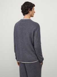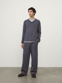 An everyday v-neck, the Clayton sweater is knitted in our seasonless, mid-weight cashmere for perennial wear. The regular fit, straight silhouette is framed by a v-neck, full-length sleeves and ribbed trims finished with a split bottom hem side detail. DETAILS Knit type: Plain Knit Gauge: 12 Weight: 230 Composition: 100% cashmere SIZE GUIDE * Designed for a regular fit * Based on European sizing * The model is 190 cm (6'2 feet) and wears a size 4 Our Sizes: Size 3: S-M Size 4: M-L Size 5: L-XL