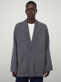 A wardrobe investment, the Lance cardigan is crafted in our densely knitted double face cashmere. The regular fit, slightly structured silhouette is punctuated by a shawl collar, a front button closure, full-length sleeves, patch pockets at the front and ribbed trims. DETAILS Knit type: Double Faced Gauge: 12 Weight: 745g Composition: 100% cashmere SIZE GUIDE * Designed for a relaxed fit * Based on European sizing * The model is 190 cm tall (6'2 feet) and wears a size 4 Our sizes: Size 3: S-M Size 4: M-L Size 5: L-XL