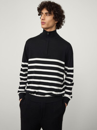 A sportswear-inspired sweater, the Otis sweater is crafted in our fine knit cotton cashmere composition suggestive of jersey. The regular fit silhouette is defined by a zipped mock turtle neck, full-length sleeves and a ribbed hem and trims. DETAILS Knit type: Cotton Cashmere Gauge: 16 Weight: 260g Composition: 70% cotton, 30% cashmere SIZE GUIDE * Designed for a regular fit * Based on European sizing * The model is 190 cm (6'2 feet) and wears a size 4 Our Sizes: Size 3: S-M Size 4: M-L Size 5: L-XL