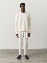 <!-- td {border: 1px solid #cccccc;}br {mso-data-placement:same-cell;} --> <!--td {border: 1px solid #cccccc;}br {mso-data-placement:same-cell;}--> A textured crewneck, the Zion sweater is knitted in our signature boucle cashmere characterised by its looped and curled yarn which lends it rich, nuanced texture. The relaxed fit silhouette features a round neck, full-length raglan sleeves and ribbed trims. DETAILS Knit type: Boucle Weight: 500g Composition: 82% cashmere, 18% nylon SIZE GUIDE * Designed for a regular fit * Based on European sizing * The model is 190 cm (6'2 feet) and wears a size 4 Our Sizes: Size 3: S-M Size 4: M-L Size 5: L-XL