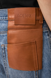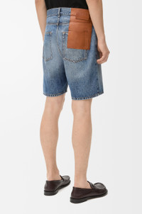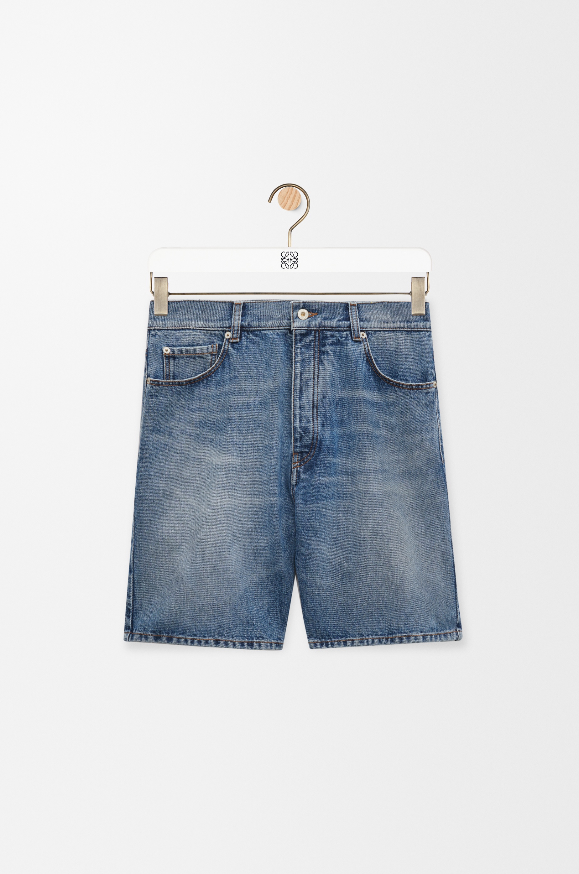 Shorts in medium-weight washed denim featuring an intarsia leather panel at the back. - Regular fit, regular length - Mid waist - Concealed button fly - Five pocket style - LOEWE embossed leather patch placed at the back Details - Colour : Blue - Main material : Cotton - Weight : 0.7 kg - Model ID : H526Y11X83 - Made in : Italy