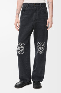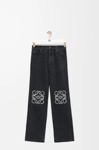 Jeans in medium-weight washed cotton denim featuring contrast Anagram cut-outs at the knees. - Relaxed fit, regular length - Mid waist, loose leg - Concealed button fly - Five pocket style - LOEWE embossed leather patch placed at the back Details - Colour : Black - Main material : Cotton - Weight : 0.7 kg - Model ID : H526Y11W61 - Made in : Italy