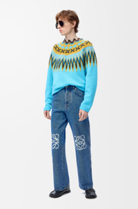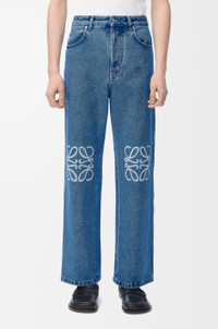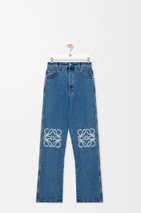 Jeans in medium-weight washed cotton denim featuring contrast Anagram cut-outs at the knees. - Relaxed fit, regular length - Mid waist, loose leg - Concealed button fly - Five pocket style - LOEWE embossed leather patch placed at the back Details - Colour : Mid Blue Denim - Main material : Cotton - Weight : 0.7 kg - Model ID : H526Y11W59 - Made in : Italy
