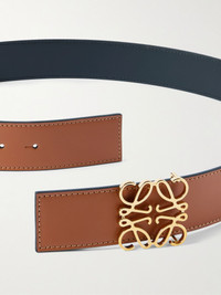 Already versatile in its simple design, Loewe's belt literally doubles up with reversible functionality. It's been handcrafted in Spain from black and tan leather and fastens with a signature gold-tone 'Anagram' buckle. Size & Fit - Fits true to size. Take your normal size - Model is shown wearing a 90 - Model measures: waist size 30 Details & Care - Tan and black leather (Calf) - Gold-tone buckle fastening