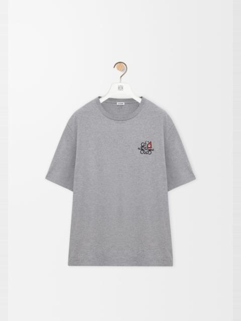 T-shirt in lightweight cotton featuring a cat eye and Anagram embroidery on the chest. This T-shirt is inspired by Louis Wain's "Futurist Cats" porcelain vase series. - Loose fit, regular length - Crew neck - Ribbed collar Colour: Grey Melange Main material: Cotton Weight: 0.15 kg Made in: Portugal Materials & care Main Material: 100% cotton