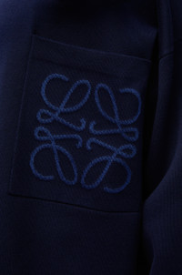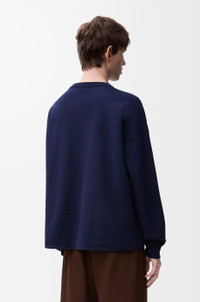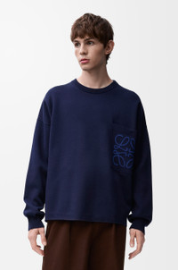 Sweater in medium-weight cotton blend double face featuring an Anagram intarsia placed on chest patch pocket. - Relaxed fit, regular length - Dropped shoulder - Round neck - Ribbed collar and cuffs - Self-start hem Details - Colour : Navy Blue - Main material : Cotton/Viscose - Weight : 1.0 kg - Model ID : H526Y14KKI - Made in : Italy
