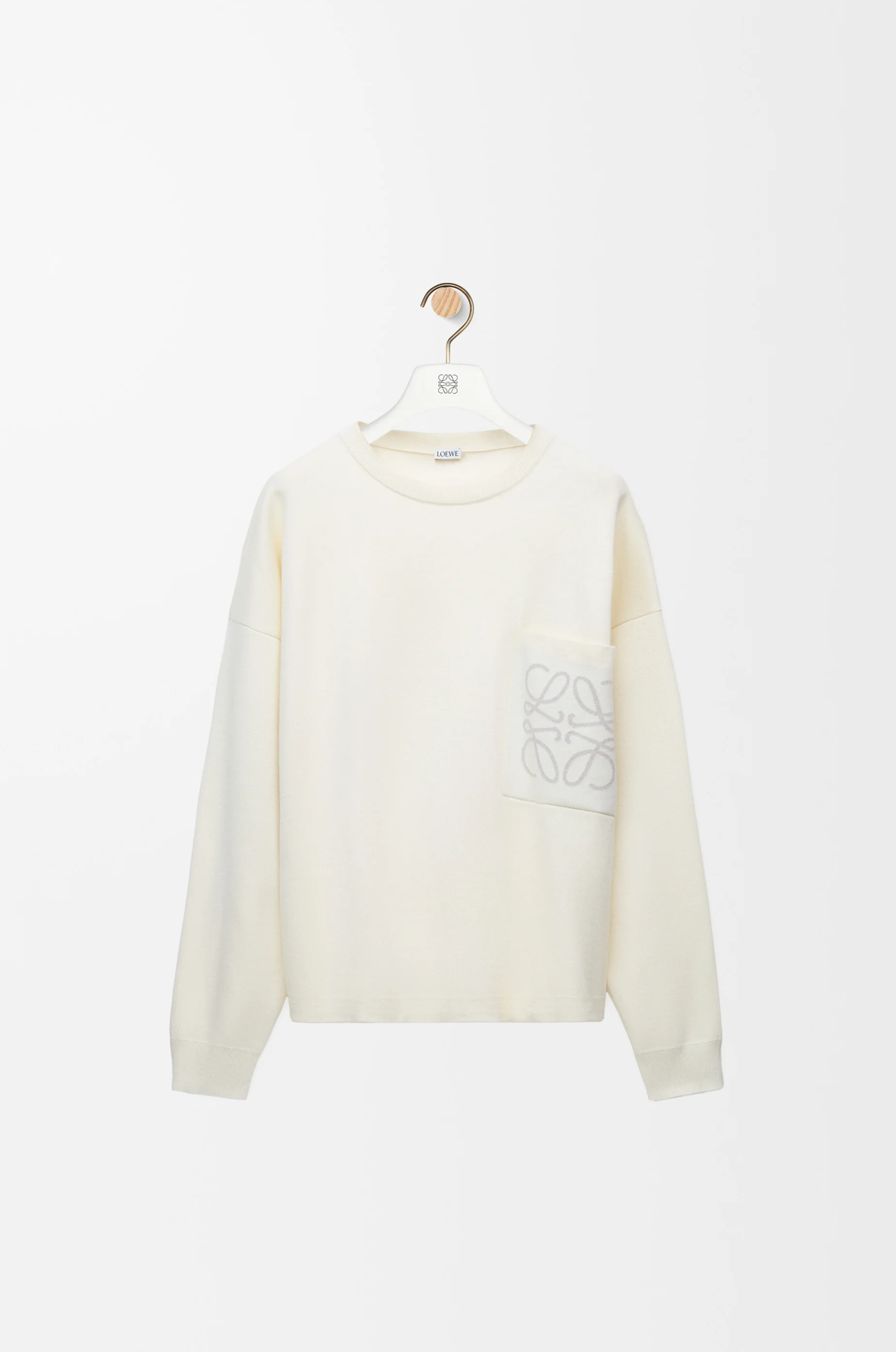 Sweater in medium-weight compact cotton blend featuring an Anagram intarsia chest pocket. - Relaxed fit, regular length - Round neck - Dropped shoulders - Ribbed collar and cuffs Details - Colour : White/Light Grey - Main material : Cotton - Weight : 0.4 kg - Model ID : H526Y14KDK - Made in : Italy