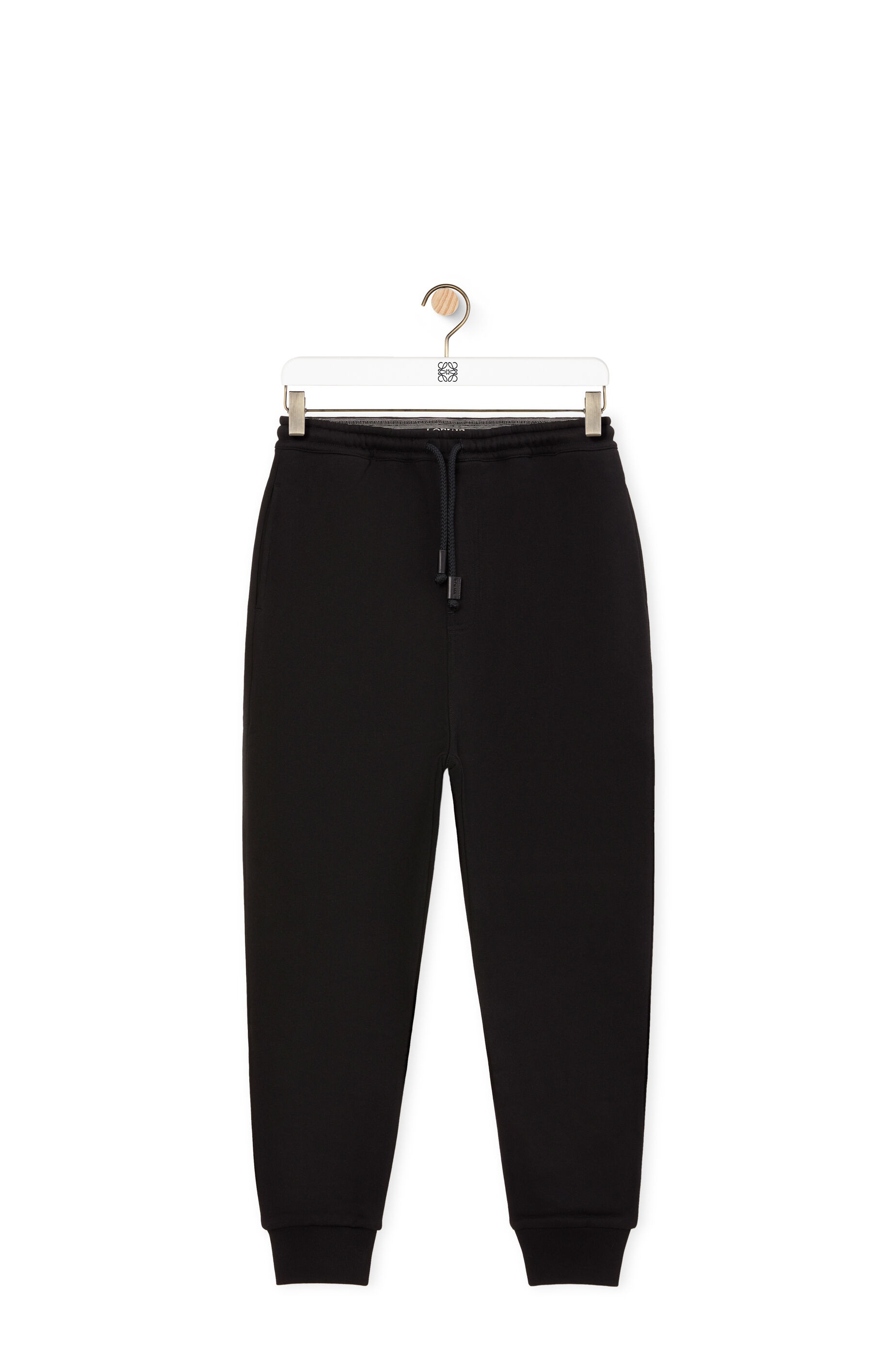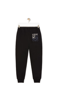 Jogging trousers in medium weight loop back cotton fleece with side pockets and single rear patch pocket featuring a two tone LOEWE Anagram embroidery. With drawstring waistband and ribbed cuffs. - Embossed LOEWE leather tab drawstrings Details - Colour: Black - Main material: Cotton - Weight: 0.7 kg - Model ID: H526Y27X46 - Made in: Portugal