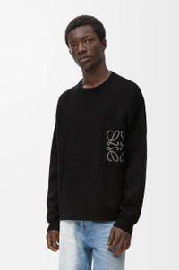 Sweater crafted in medium-weight cotton and viscose blend. - Relaxed fit - Regular length - Dropped shoulder - Chest patch pocket with Anagram intarsia - Round neck - Ribbed collar and cuffs Details - Colour: Black - Main material: Viscose/Cotton - Weight: 0.4 kg - Model ID: H526Y14KDK - Made in: Italy
