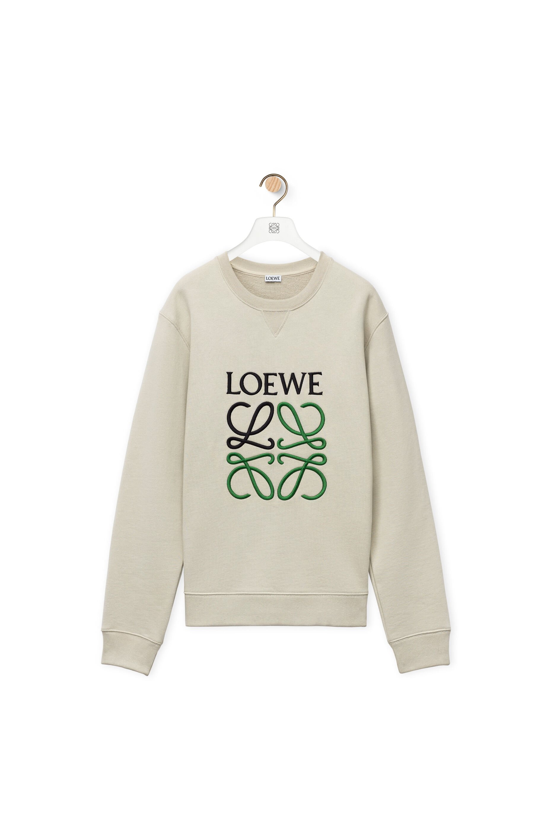LOEWE Anagram regular fit sweatshirt crafted in medium-weight loop back cotton fleece. - Regular fit - Regular length - LOEWE Anagram embroidery placed at the front - Crew neck with V stitch - Ribbed collar, cuffs and hem Details - Colour: Creta Beige - Main material: Cotton - Weight: 0.5 kg - Model ID: H526Y24X10 - Made in: Portugal