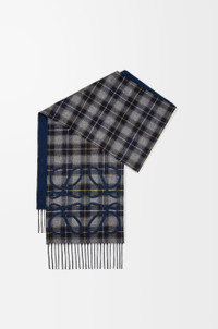 Scarf in lightweight silk and cashmere featuring an Anagram jacquard pattern. - 28cm x 180cm - Check pattern on one side and solid colour on the other side - Fringed edges Colour: Navy/Anthracite/Navy Main material: Silk/cashmere Weight: 0.132 kg Height: 180 cm Width: 28 cm Made in: Italy