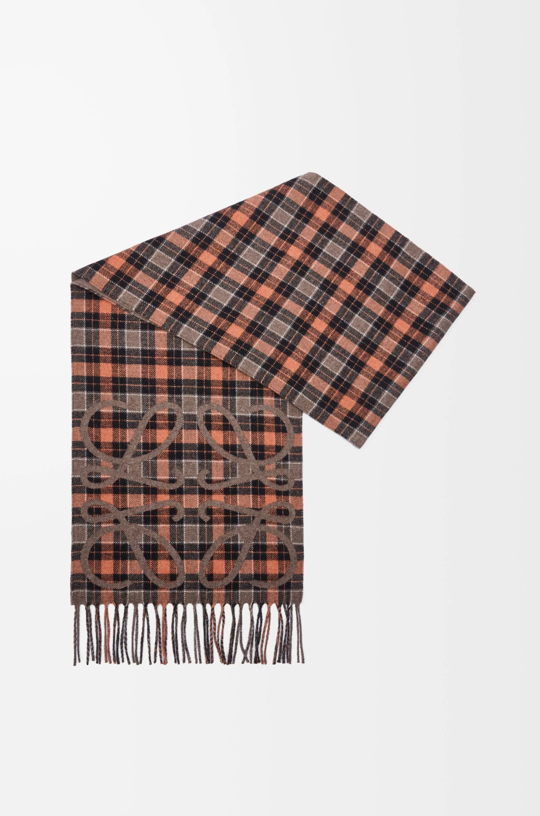 Scarf in lightweight silk and cashmere featuring an Anagram jacquard pattern. - 28cm x 180cm - Check pattern on one side and solid colour on the other side - Fringed edges Colour: Brown/Multicolor Main material: Silk/Cashmere Weight: 0.125 kg Height: 180 cm Width: 28 cm Made in: Italy