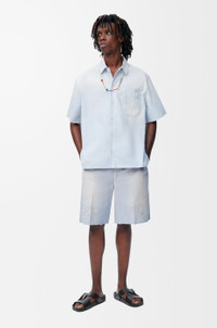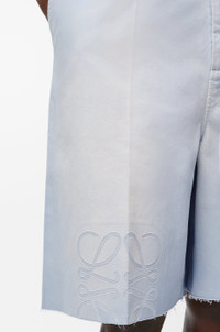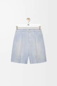 Shorts in lightweight washed cotton twill featuring Anagram cut-outs at the knees and a raw hem. - Regular fit, regular length - Mid waist - Button fastening, concealed button fly - Slash pockets, rear patch pockets - LOEWE embossed leather patch placed at the back Colour: Sky Blue Main material: Cotton Weight: 0.5 kg Made in: Italy