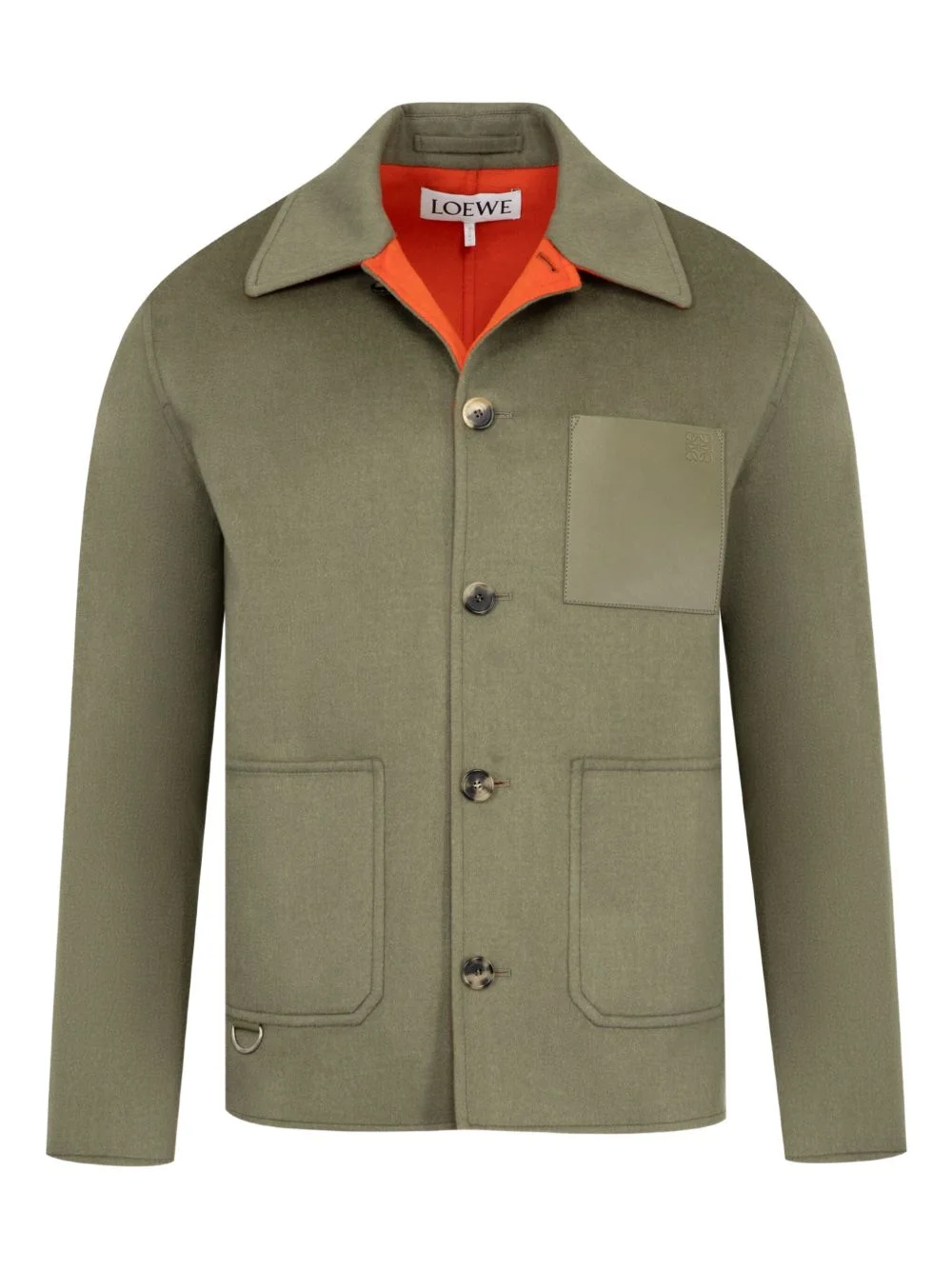 patch-pockets shirt jacket Highlights - Olive green - Contrasting orange lining - Button fastening - Three patch pocket - Long sleeves Imported Composition Outer: Cashmere 100% Washing instructions Read Manufacturer Guidelines