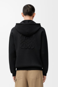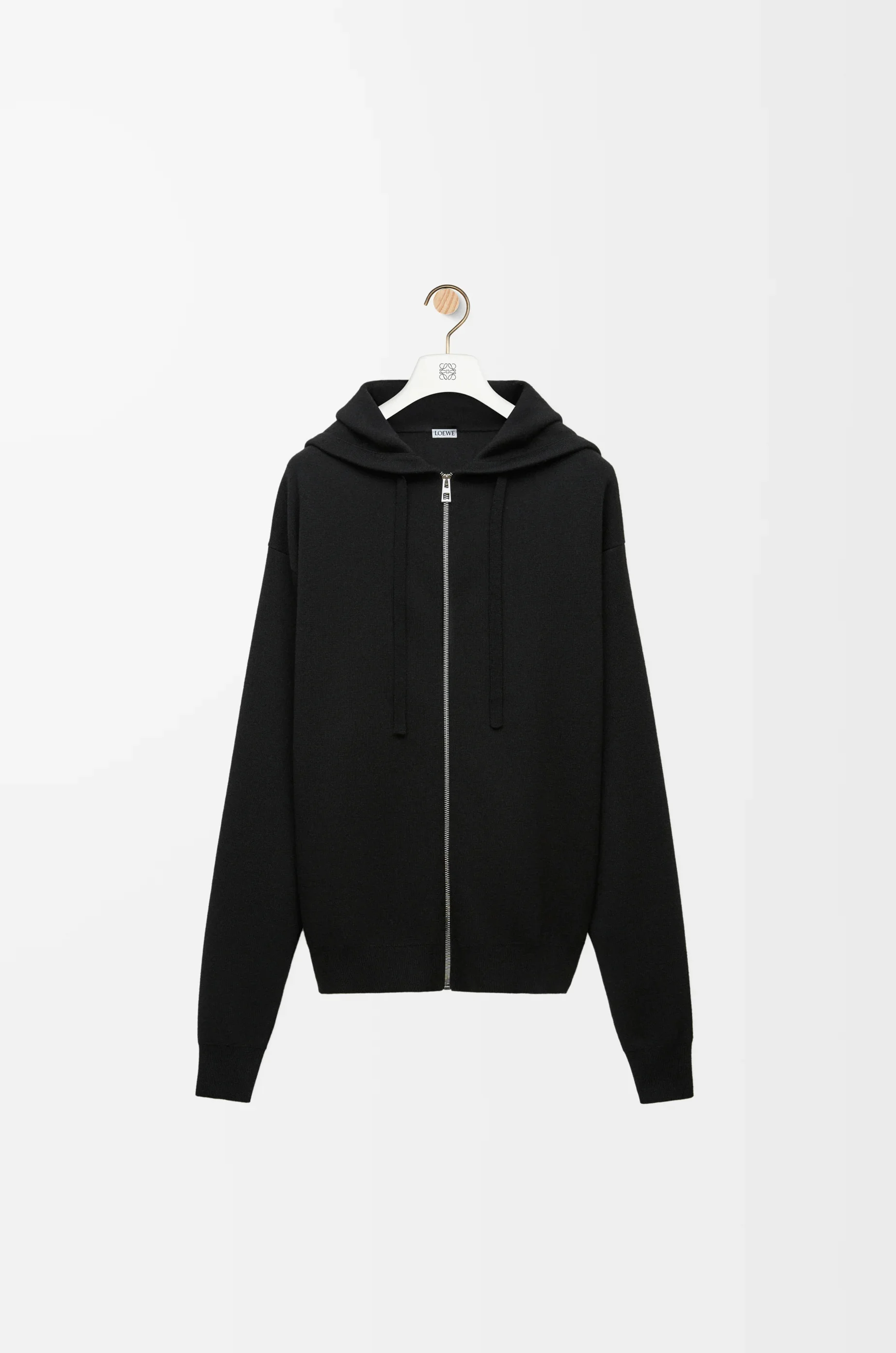 Hoodie crafted in medium-weight compact wool. - Double face stitch - Relaxed fit - Regular length - Hooded collar with drawstring - Self-start cuffs and hem - Zip front fastening - Anagram debossed placed at the back Details - Colour : Black - Main material : Wool - Weight : 1.0 kg - Model ID : H526Y16K84 - Made in : Italy