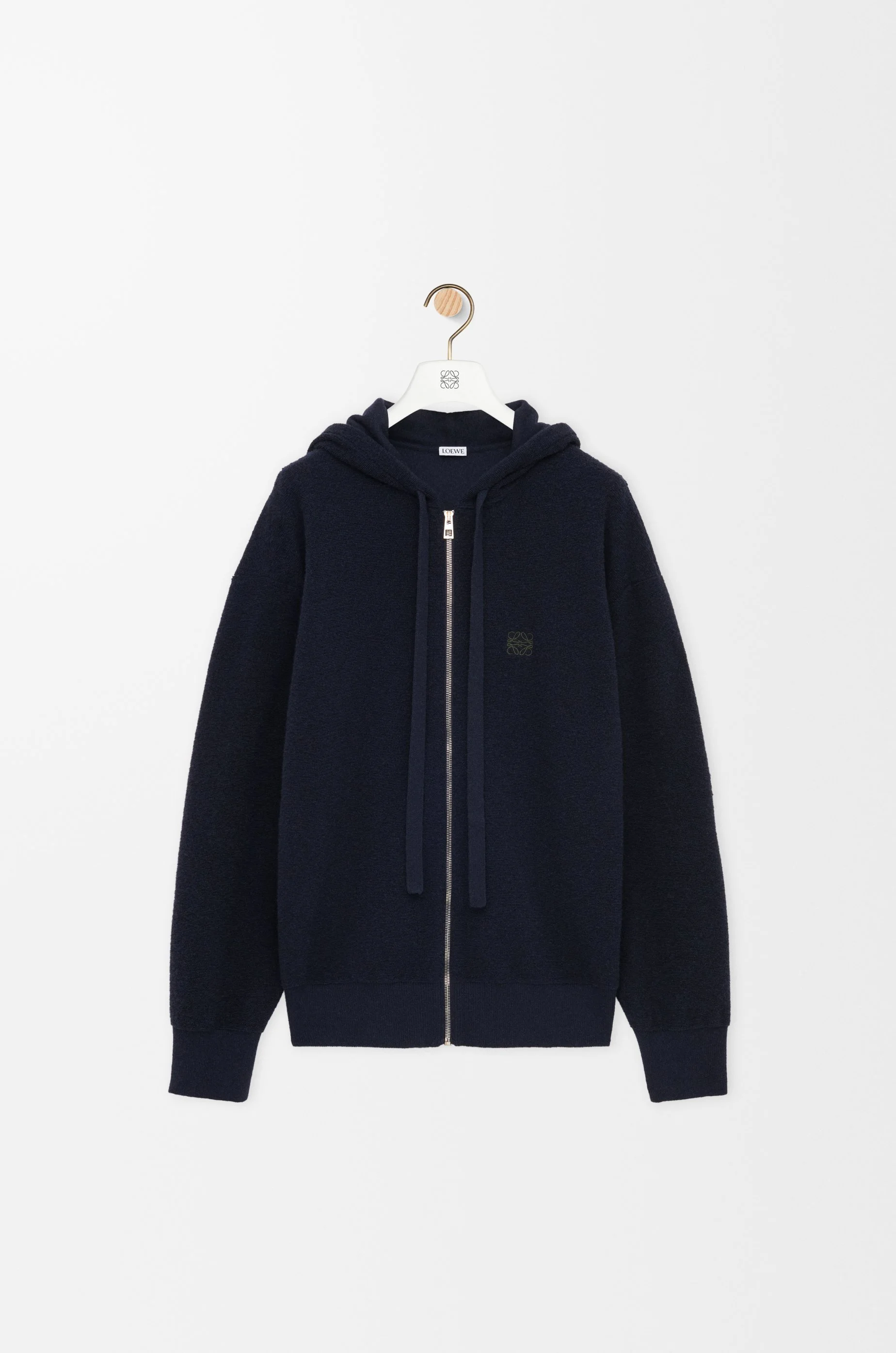 Hoodie in medium-weight wool. - Regular fit, regular length - Terry stitch - Hooded collar - Zip front fastening - Ribbed cuffs and hem - Anagram embroidery placed on the chest Colour: Navy Blue Main material: Wool Weight: 0.7 kg Made in: Italy