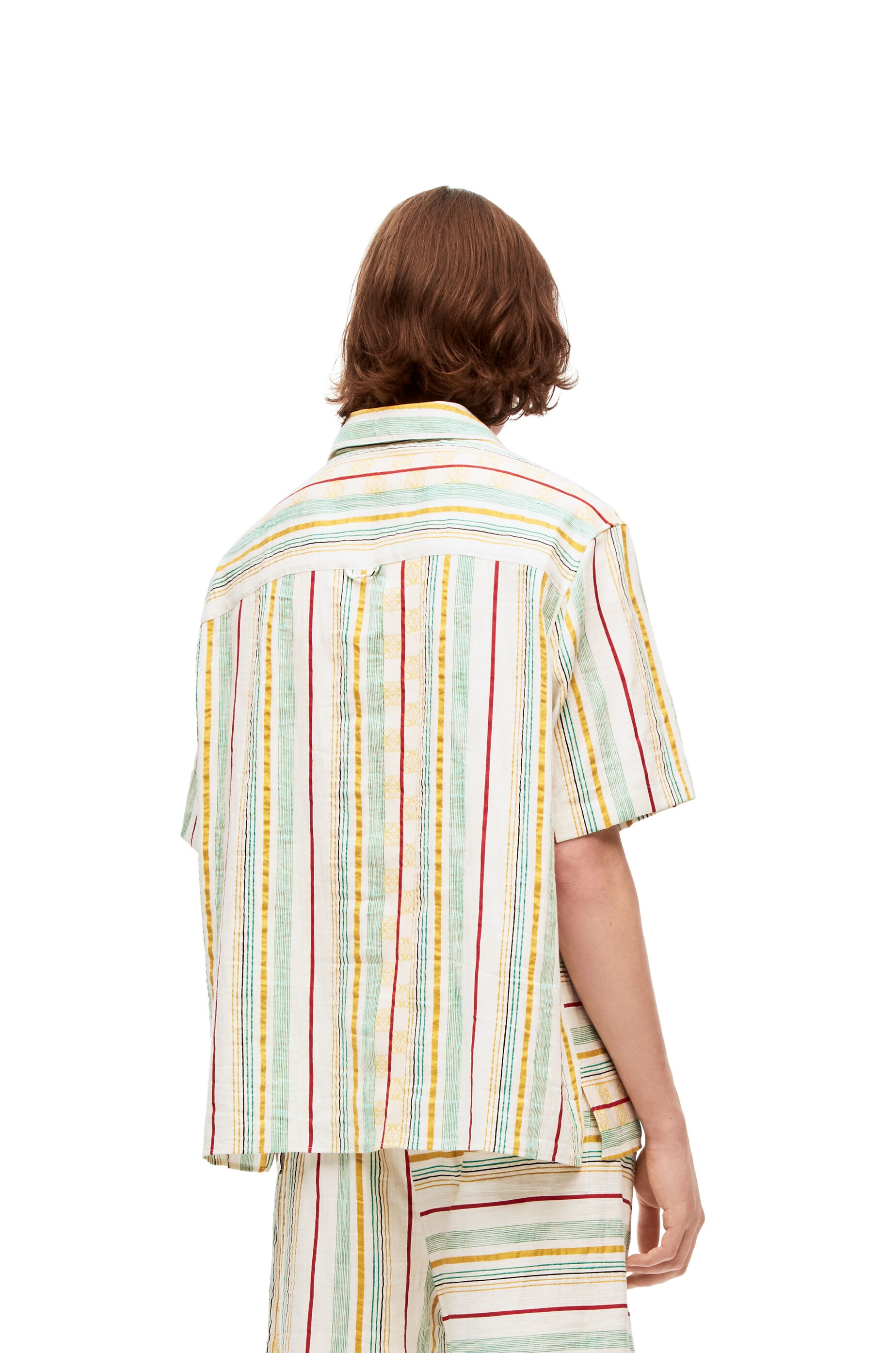 Short sleeve button front bowling shirt in lightweight textured stripes and Anagram jacquard, with a single chest pocket. - Relaxed fit Details - Colour: Green/Red/Yellow - Main material: Cotton/Linen/Silk - Weight: 0.3 kg - Model ID: H616Y05W24 - Made in: Italy