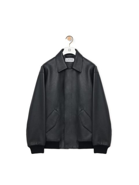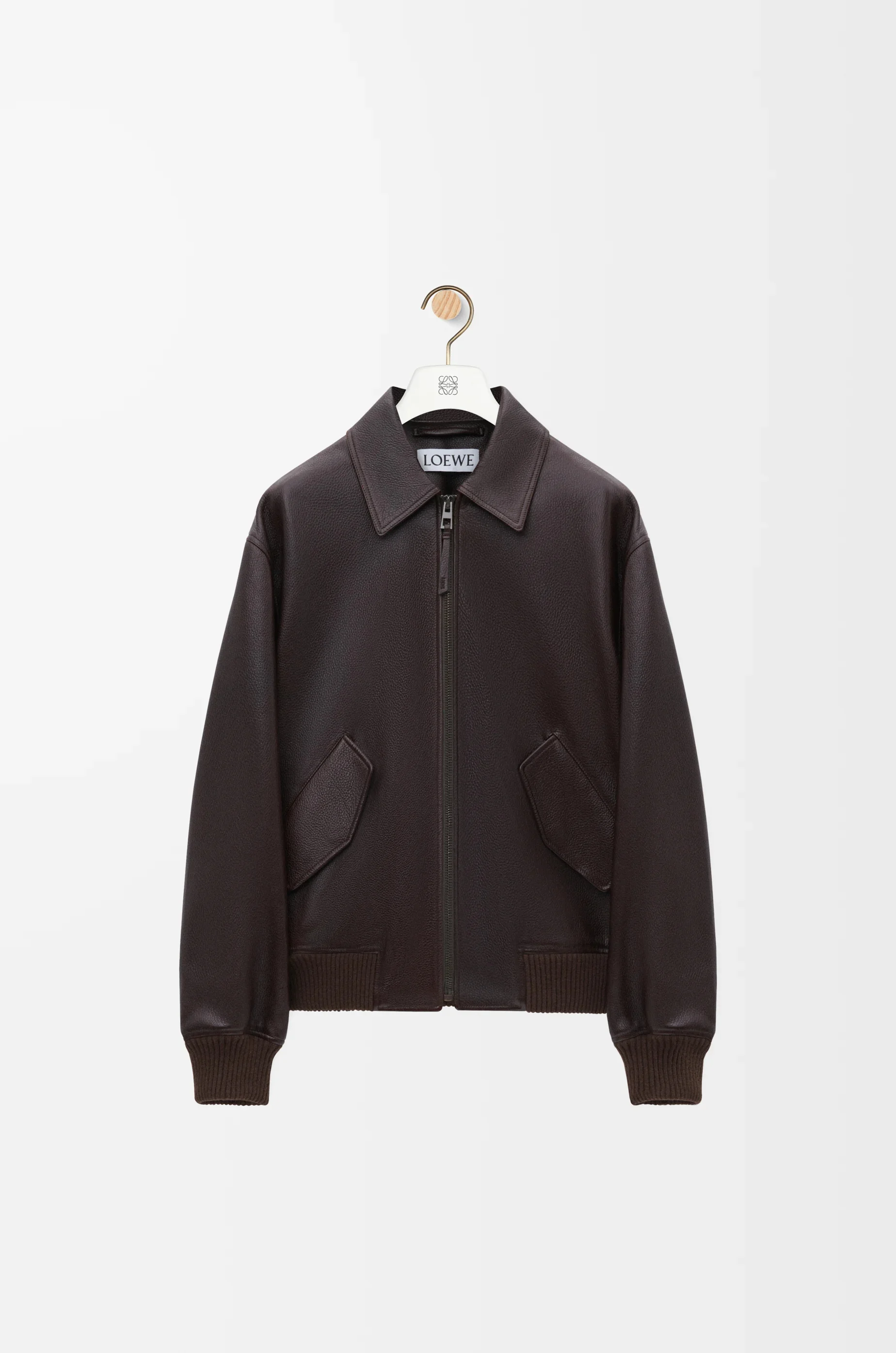 Jacket in medium-weight grained deerskin - Regular fit, regular length - Classic collar, rib knit cuffs and hem - Zip front fastening - Buttoned flap pockets, inside welt pocket - Fully lined - LOEWE Anagram embossed leather patch placed at the back Details - Colour : Oxblood - Main material : Deer - Weight : 1.7 kg - Model ID : H526Y19LAS - Made in : Italy