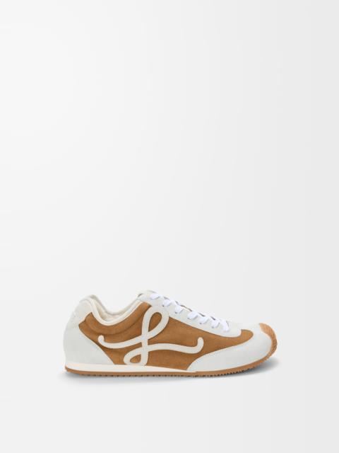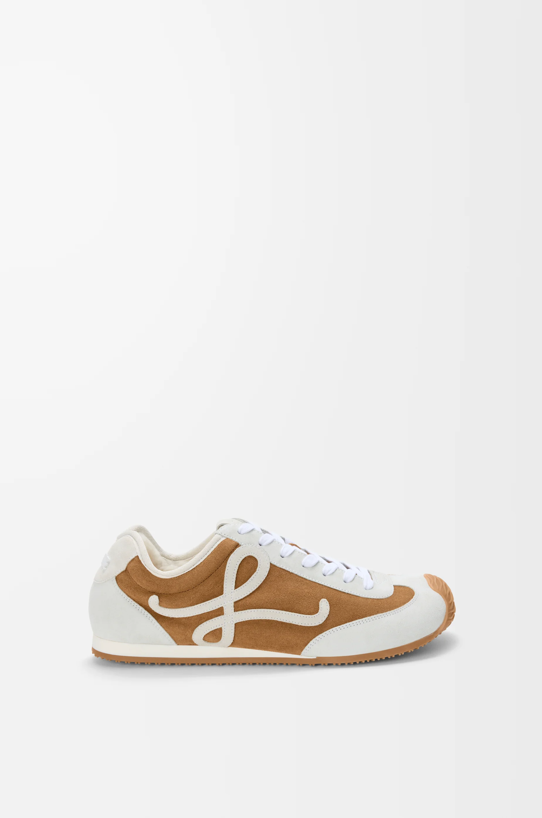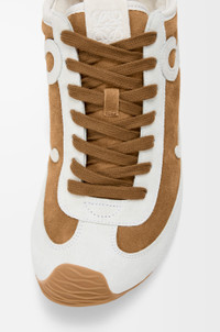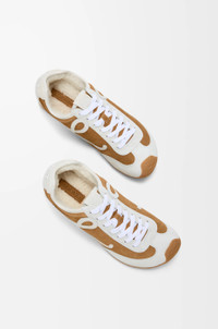 Sneaker in suede and shearling featuring an asymmetrical toe shape, a sock-like internal structure and a lightweight rubber outsole that extends to the toecap. - 20mm heel - Comes with double laces - L monogram at the side, embossed Anagram on the tongue - Injected rubber LOEWE on the heel tab Colour: Tan/White Main material: Suede/Shearling Weight: 0.8 kg Made in: Italy