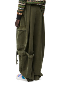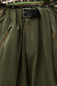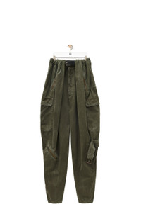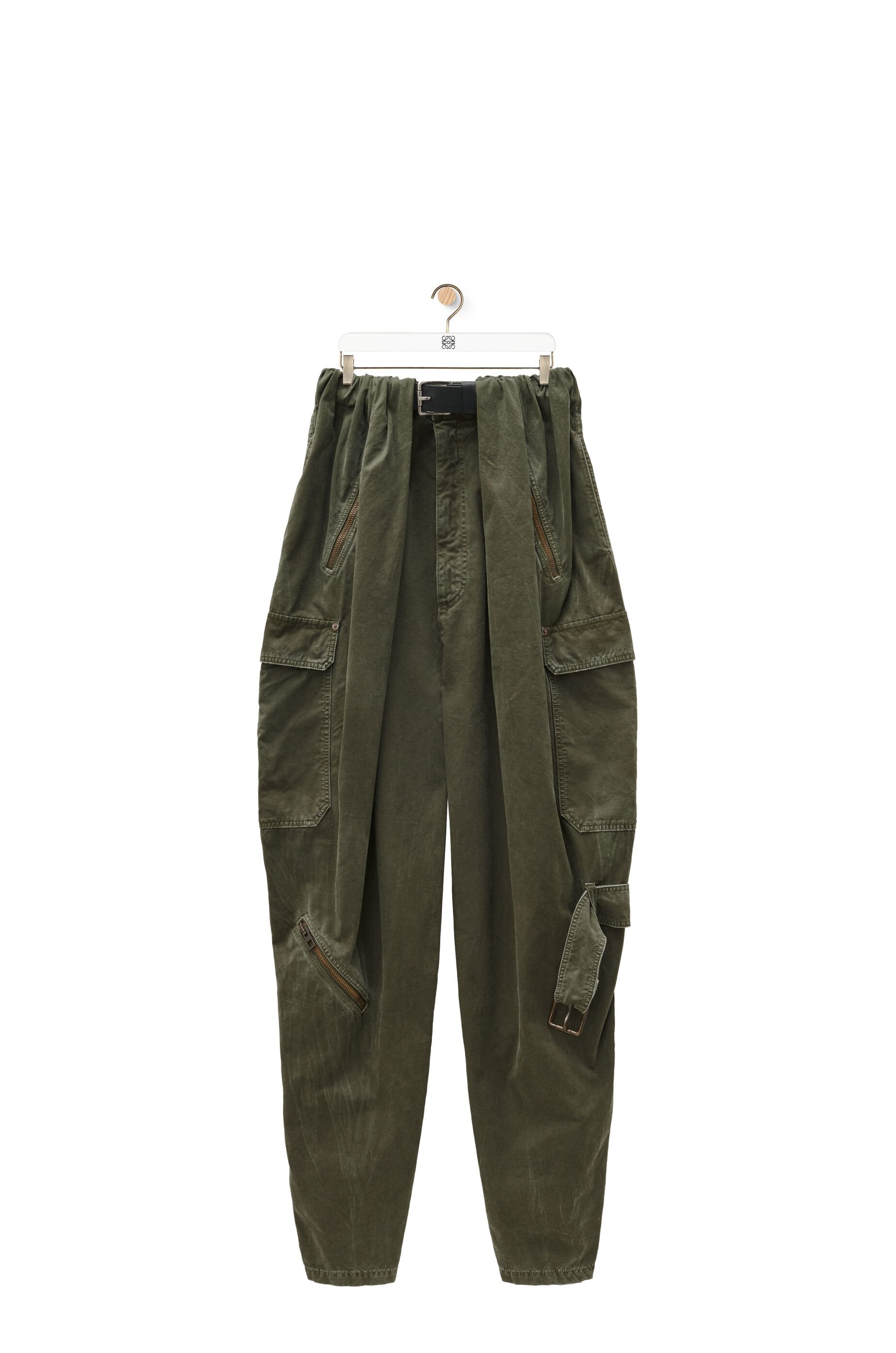 Trousers crafted in medium-weight washed cotton. - Oversized fit - Regular length - Mid waist - Loose leg - Partially concealed built-in leather belt - Concealed zip fly - Seam pockets - Zipped pockets - Cargo pockets - Decorative removable belt detail on the left leg Details - Colour : Deep Olive - Main material : Coton - Weight : 0.6 kg - Model ID : HSM1Y04W68 - Made in : Italy