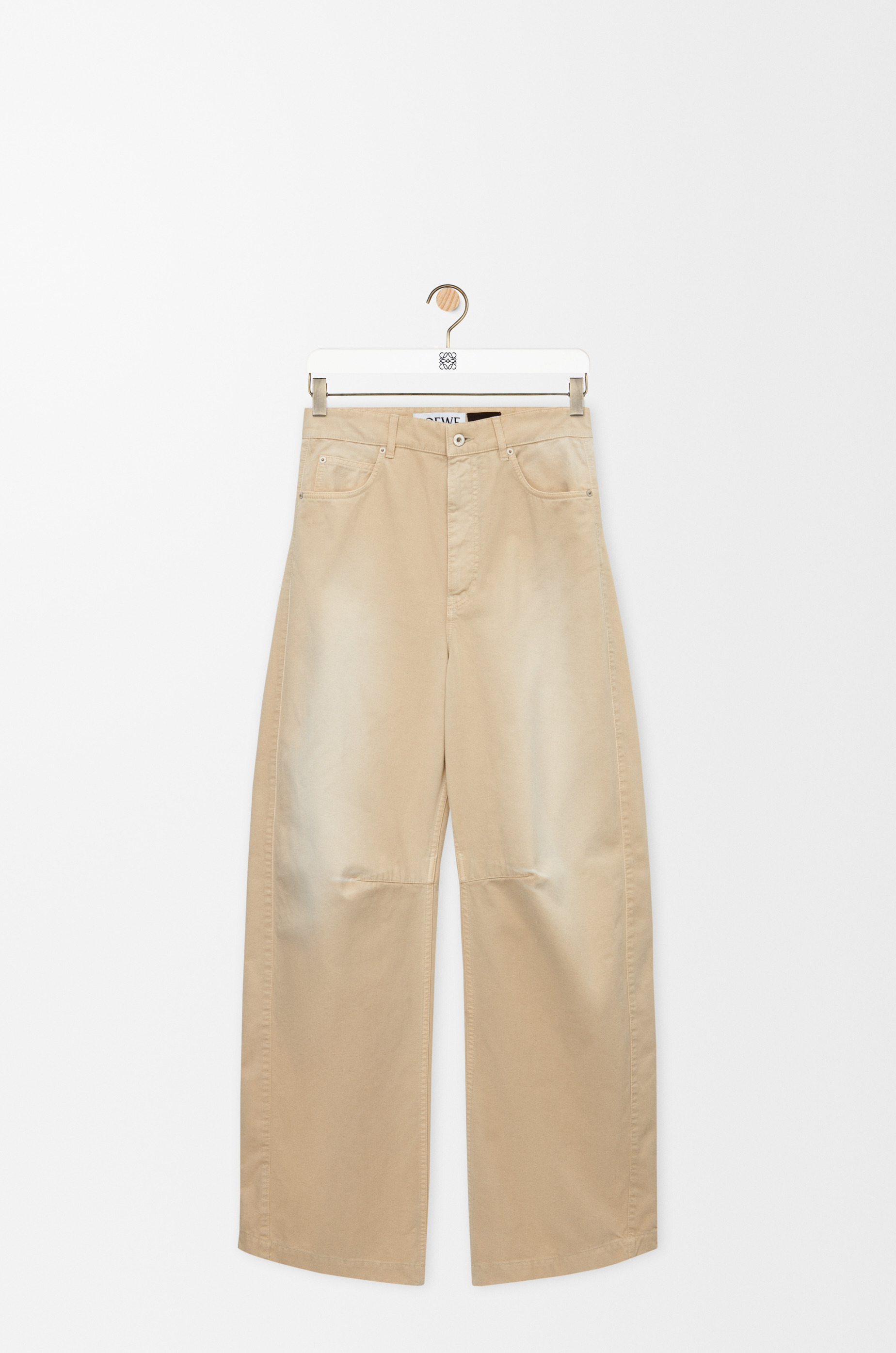 Trousers in lightweight washed cotton twill featuring a barrel leg. - Relaxed fit, regular length - Mid waist - Button fastening, concealed button fly - Five pocket style - LOEWE embossed leather patch placed at the back Colour: Light Beige Main material: Cotton Weight: 0.7 kg Made in: Italy