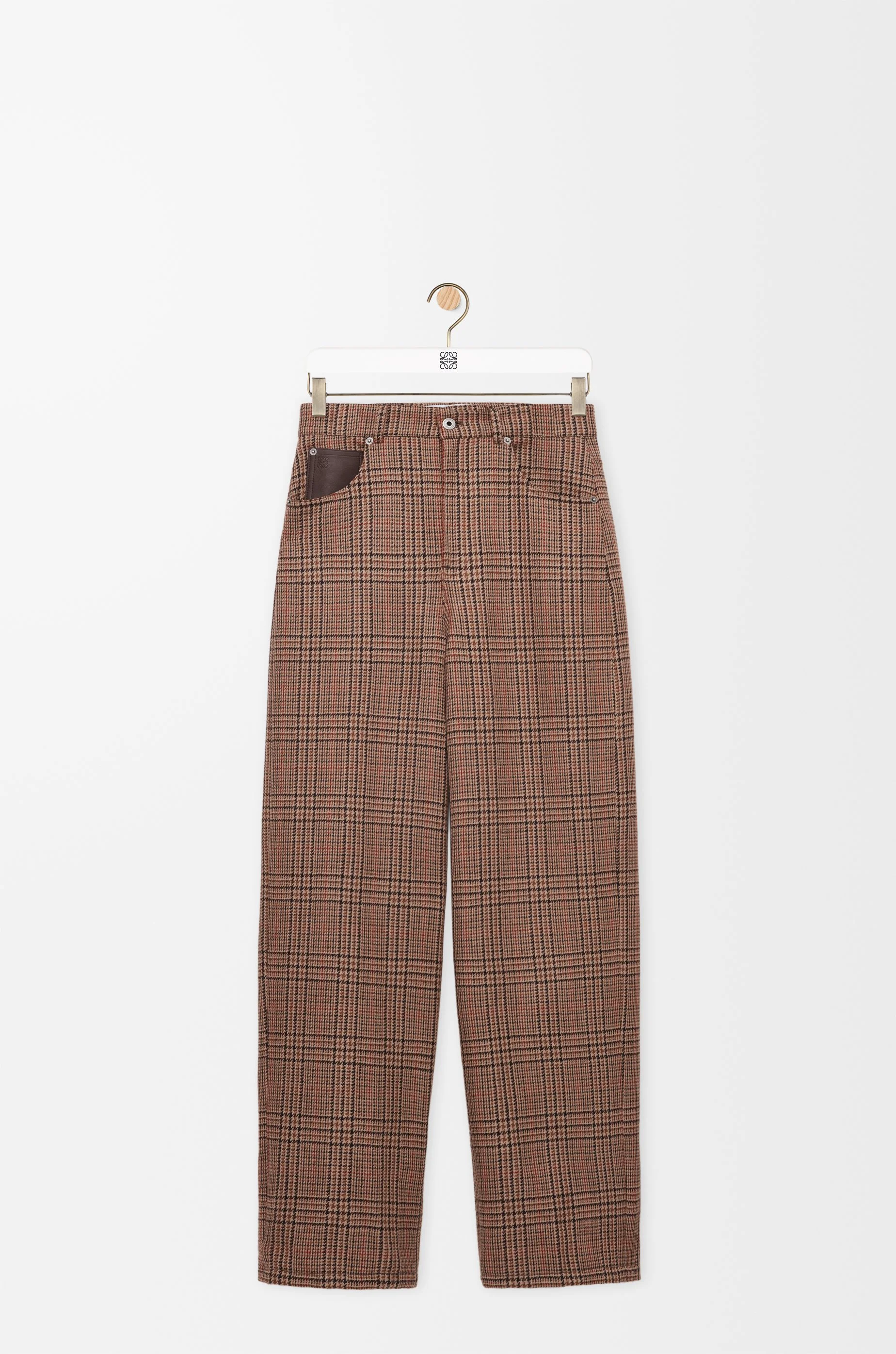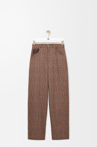 Trousers in medium-weight Prince of Wales wool tweed featuring a barrel leg. - Regular fit, regular length - Mid waist - Five pocket style - Concealed zip fly - LOEWE embossed leather patch placed at the back, Anagram embossed leather coin pocket Colour: Beige/Multicolor Main material: Wool Weight: 0.65 kg Made in: Italy Materials & care Main Material: 100% wool