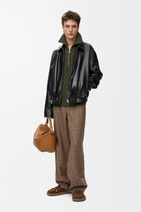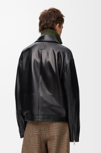 Jacket in lightweight plonge nappa lambskin featuring a gathered front with a decorative contrast belt. - Regular fit, regular length - Classic collar - Zip front fastening, zipped cuffs - Seam pockets, inside welt pocket - Fully lined - LOEWE embossed leather patch placed at the back Colour: Black Main material: Nappa Weight: 1.35 kg Made in: Italy Materials & care Main Material: 100% lambskin
