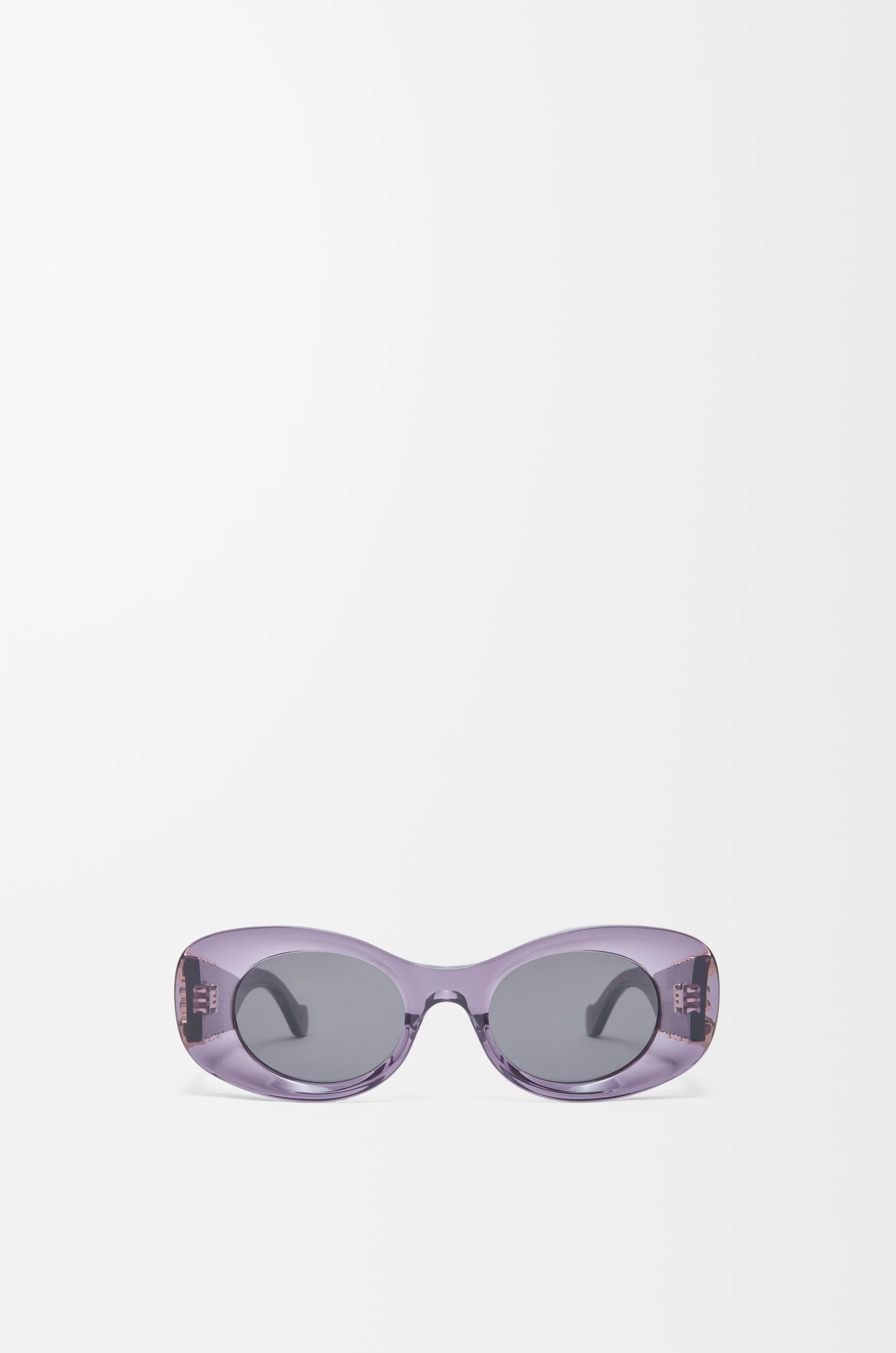 Oval-shaped sunglasses in a beveled acetate construction. - Universal fit - UVA/UVB protection - Gold-finish metal Anagram Colour: Transparent Purple Main material: Acetate Weight: 0.039 kg Made in: Italy