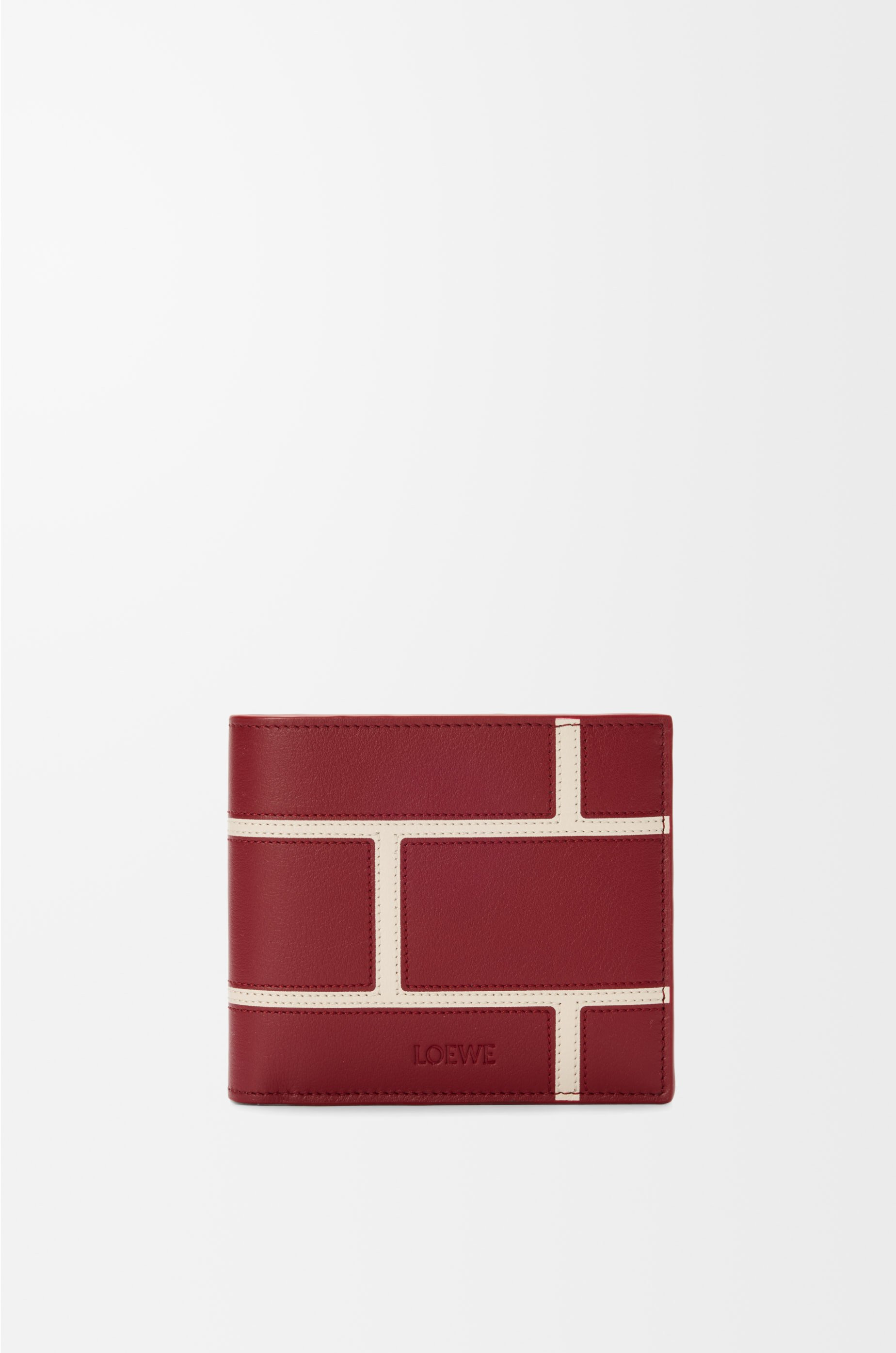 Bifold wallet in classic calfskin with a printed brick pattern and stitched outlines. - Eight card slots, two large note pockets, two flat pockets - Calfskin lining - Embossed LOEWE Colour: Burnt Red Main material: Classic Calf Weight: 0.08 kg Height: 9.9 cm Width: 11 cm Depth: 1.8 cm Made in: Spain