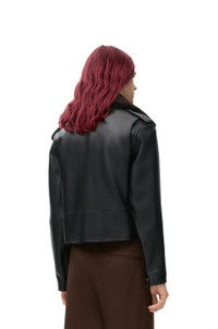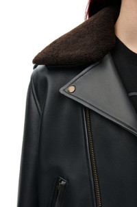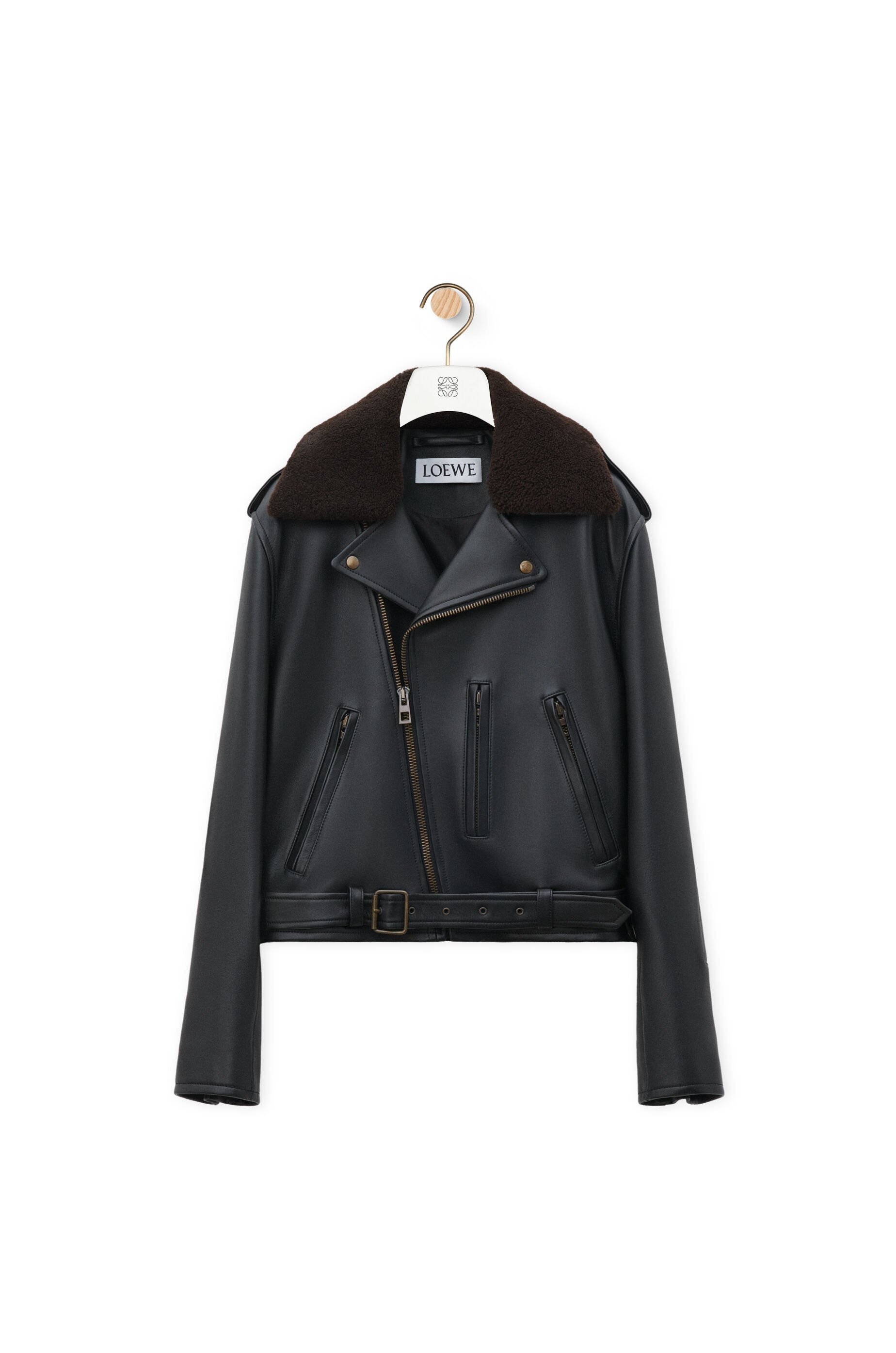 Jacket in medium-weight mellow nappa lambskin featuring a classic biker silhouette with a detachable curly Merino shearling collar and an adjustable belt at the hem. - Regular fit, short length - Zip front fastening, zipped cuffs - Multiple zipped pockets - Fully lined - LOEWE Anagram embossed leather patch placed at the back Details - Colour : Black - Main material : Nappa - Weight : 1.2 kg - Model ID : H526Y34L26 - Made in : Spain